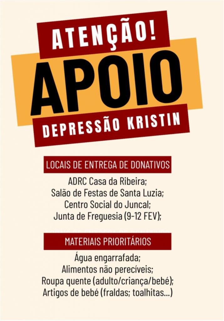 A recolha de donativos será realizada nos salões de Santa Cruz (ADRC da Casa da Ribeira, Centro Social do Juncal e Salão de Festas de Santa Luzia).