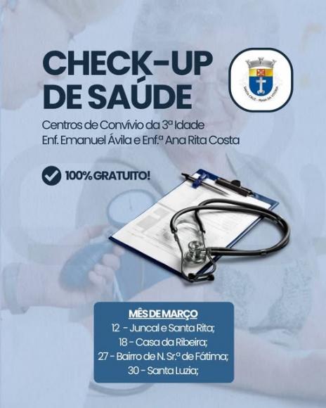 A Junta de Freguesia irá promover sessões de check-ups de saúde gratuitos a todos os idosos dos centros de convívio de Santa Cruz.Agradecemos, desde já, a disponibilidade dos enfermeiros Emanuel Ávila e Ana Rita Costa, que serão nossos parceiros nesta iniciativa.Santa Cruz em Renovação!